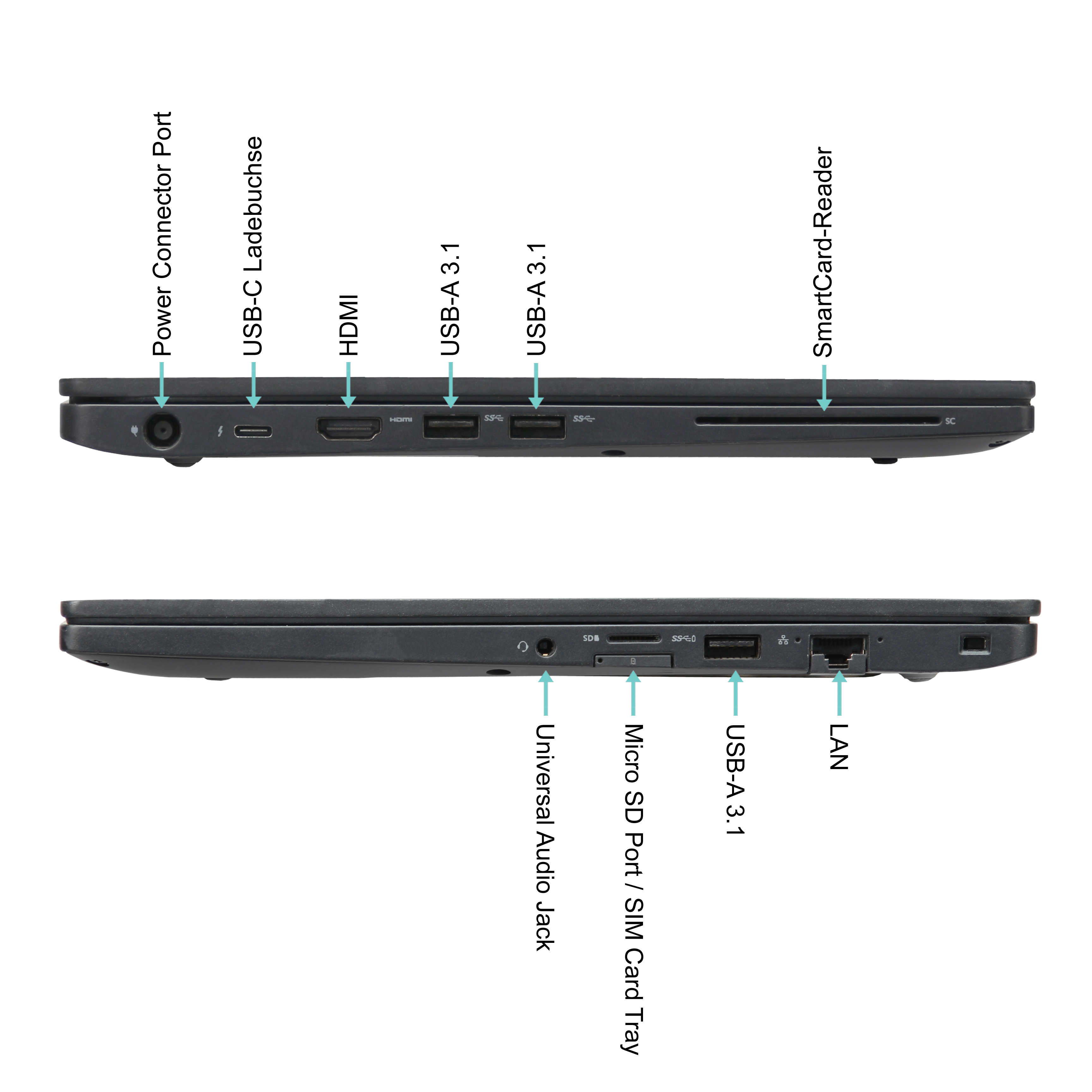 - Der Laptop ist mit einer schnellen 1TB M.2 NVMe SSD ausgestattet. Er verfügt über 3 x USB-A 3.0 / 1 x USB-C 3.0 Anschlüsse. Außerdem hat das Notebook einen RJ-45-Port, einen SD-Kartenleser und einen kombinierten Audio-Ein/Ausgang.