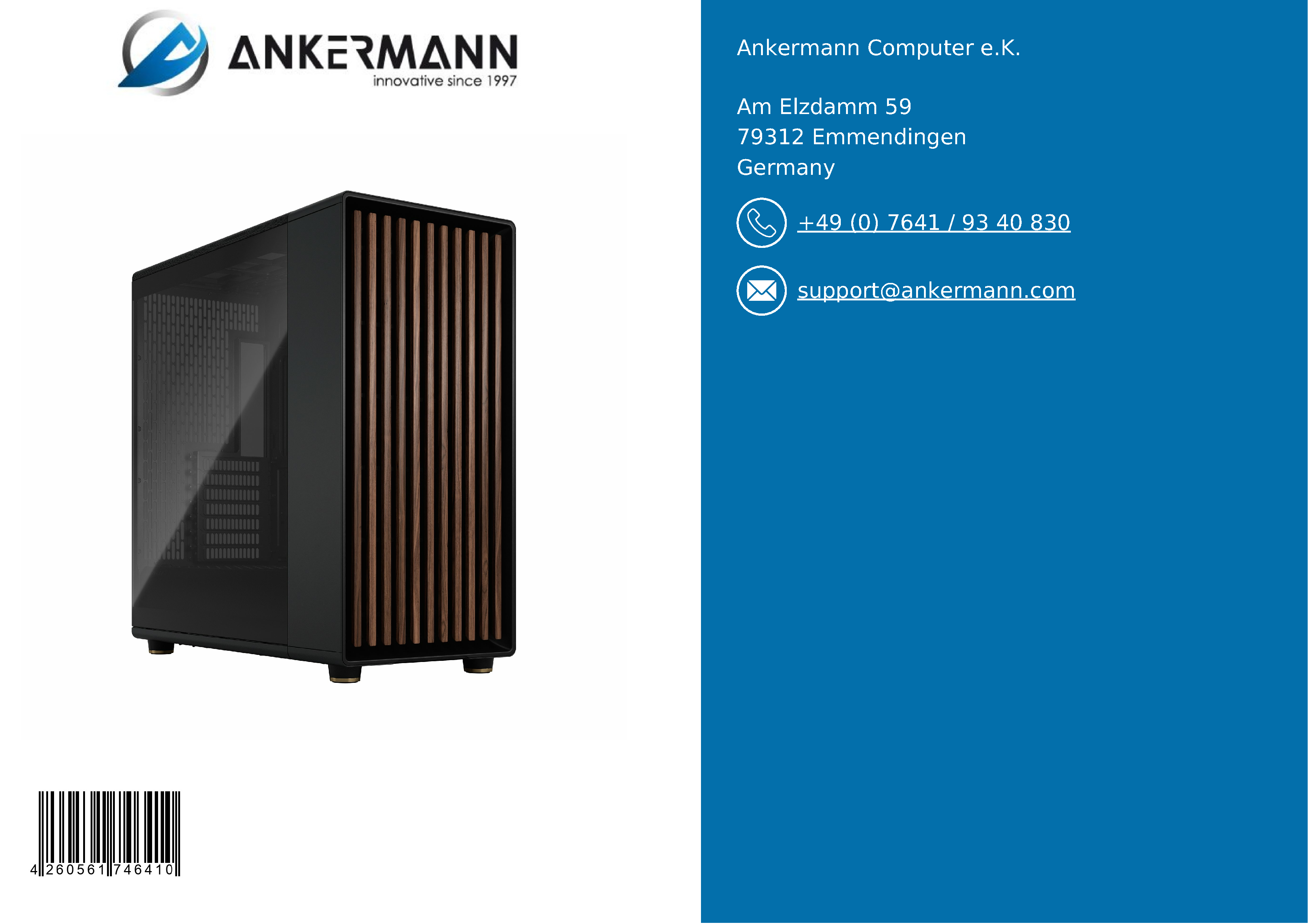 - Der Service von Ankermann bietet Dir langjährige Erfahrung in der Herstellung, dem Vertrieb und der Qualitätssicherung von PCs in Deutschland und 24 Monate Garantie auf unsere Hardware. 6 Monate Return-Service im Garantiefall und ein schneller und freundlicher Kundensupport sind selbstverständlich für uns.