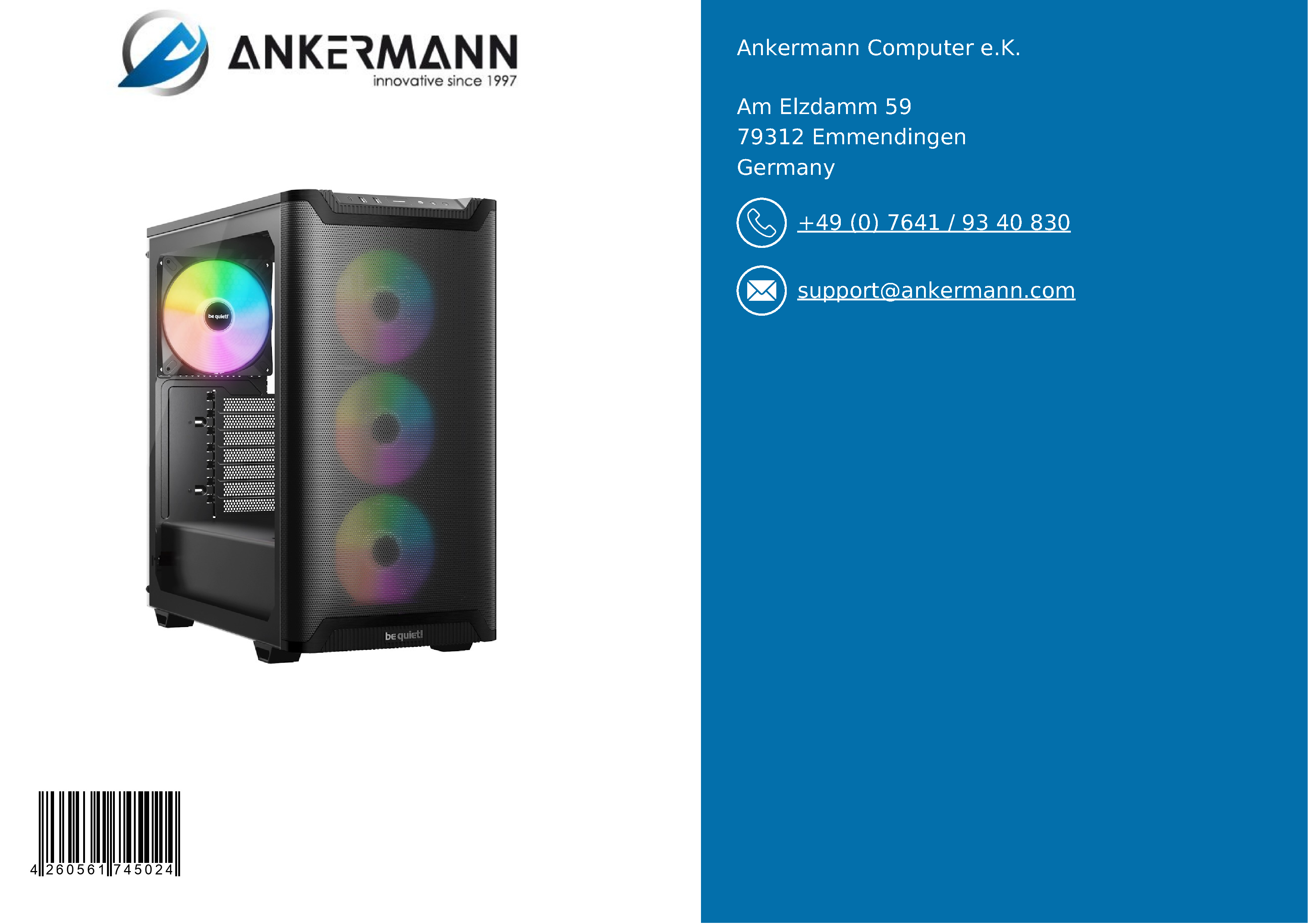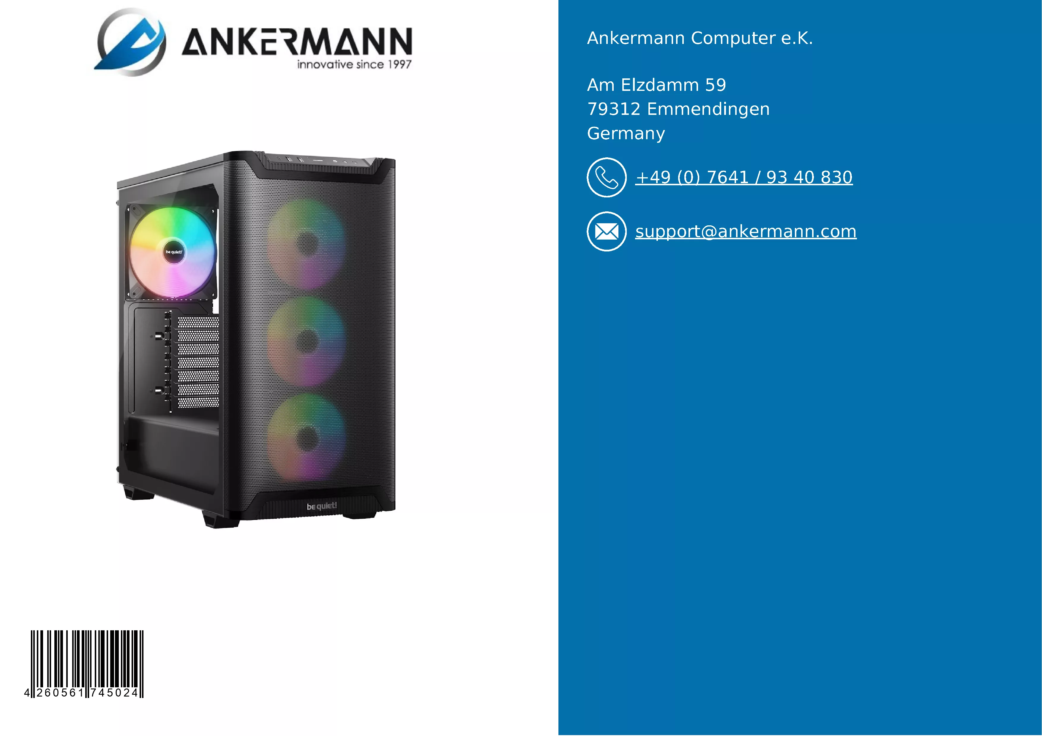 - Der Service von Ankermann bietet langjährige Erfahrung in der Herstellung und dem Vertrieb von PCs in Deutschland und 24 Monate Garantie. 6 Monate kostenloser Return-Service im Garantiefall und ein schneller und freundlicher Kundensupport sind inklusive.