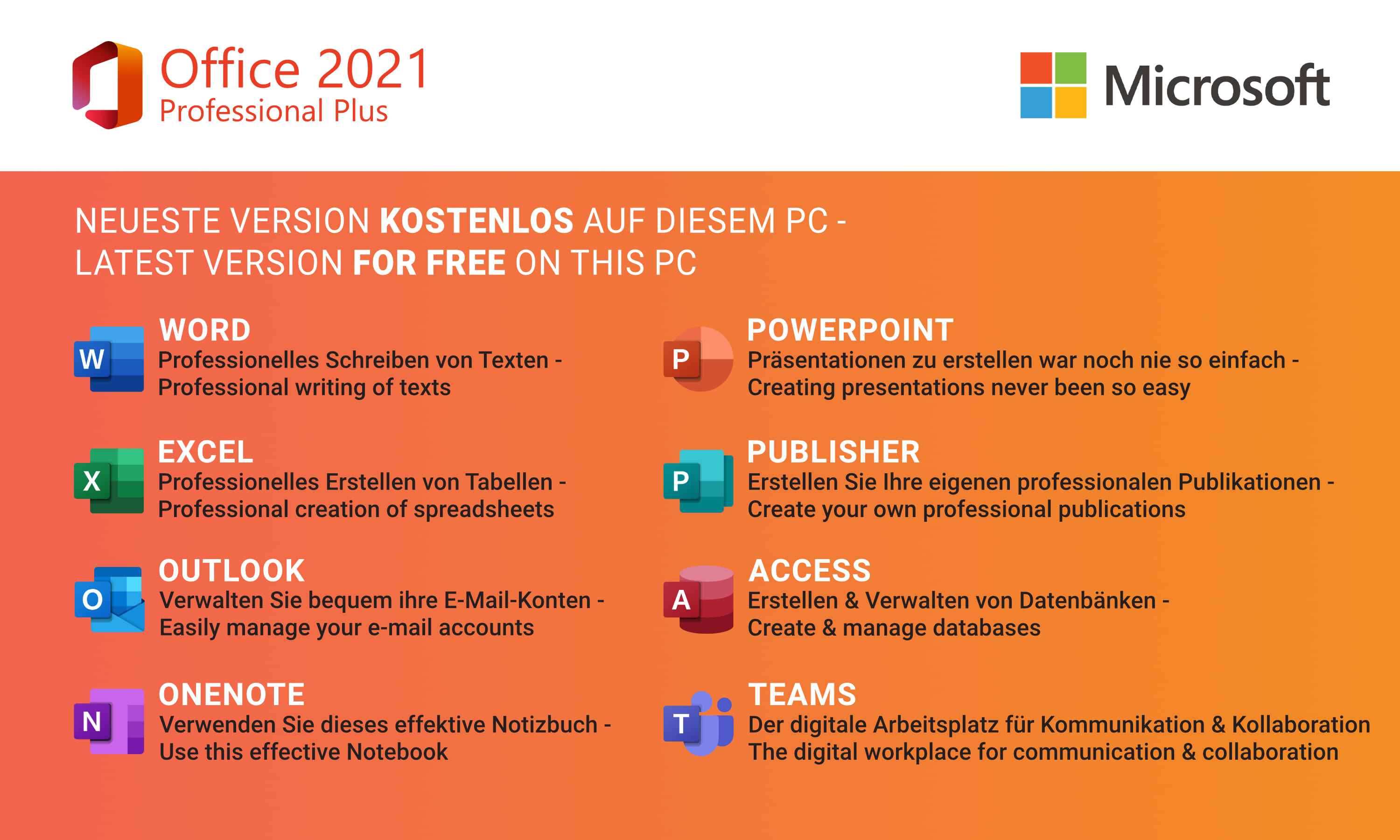 | Office | MS Office 2024 Professional Plus (64-Bit) Word Excel Access Outlook PowerPoint OneNote (LTSC) |