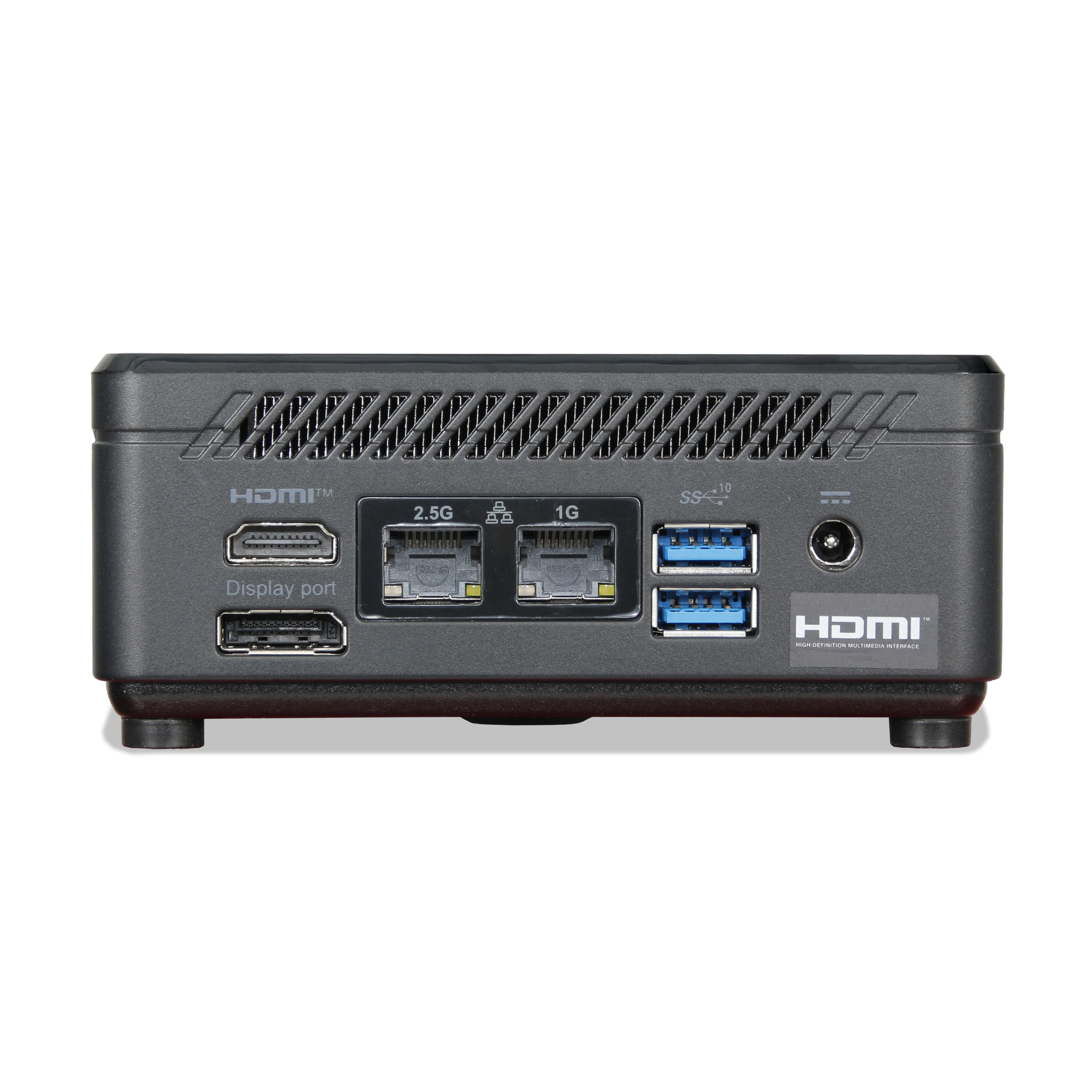 - Unser Mini PC verfügt über eine Intel Iris Xe Grafikeinheit mit 1 x HDMI- und 1 x DP-Anschlüssen. Das System ist in unserem kleinen Gehäuse mit VESA-Halterung und einem externen 65W-Netzteil untergebracht.
