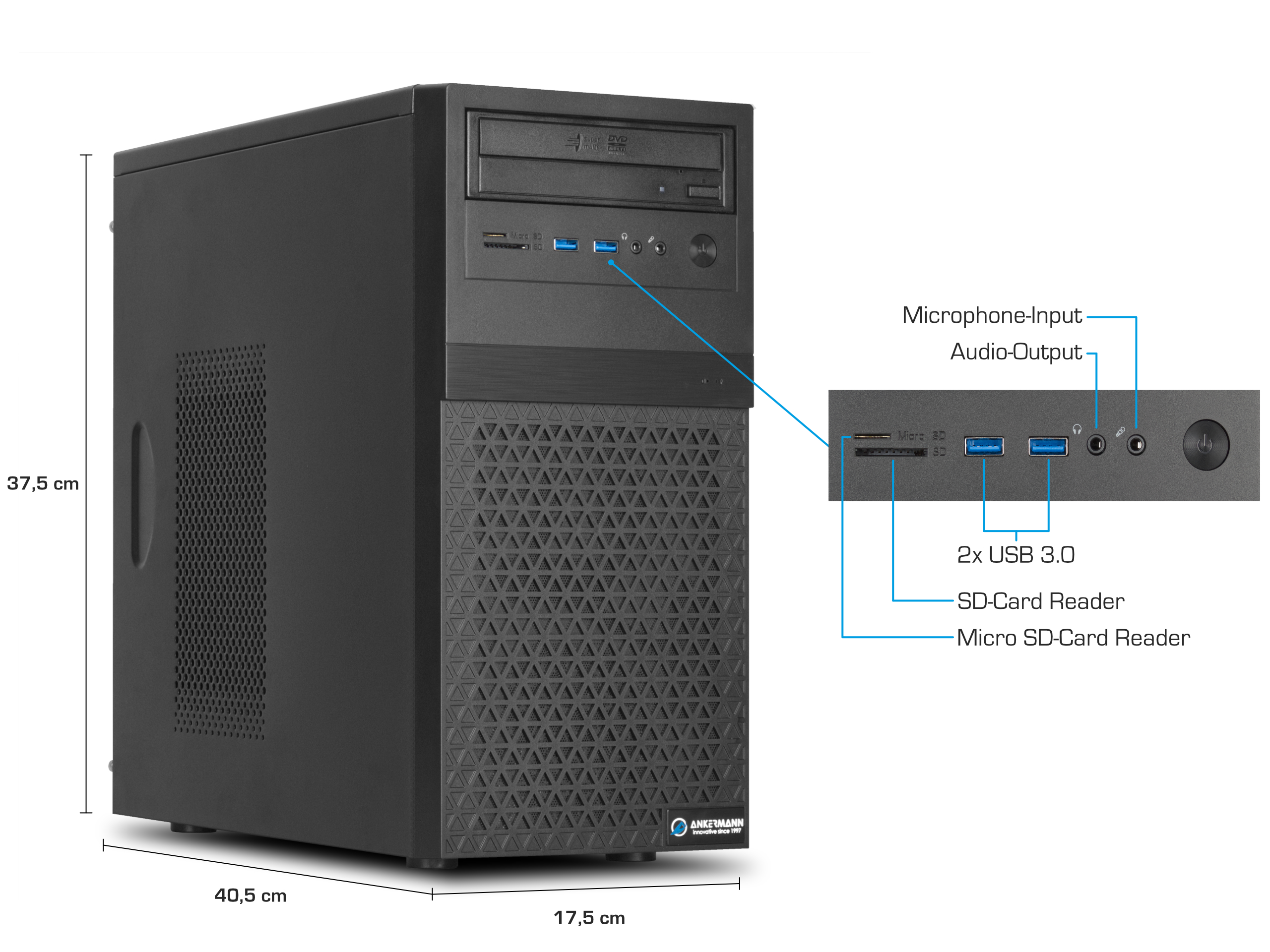 - Der Service von Ankermann bietet langjährige Erfahrung in der Herstellung und dem Vertrieb von PCs in Deutschland und 24 Monate Garantie. 6 Monate kostenloser Return-Service im Garantiefall und ein schneller und freundlicher Kundensupport sind inklusive.