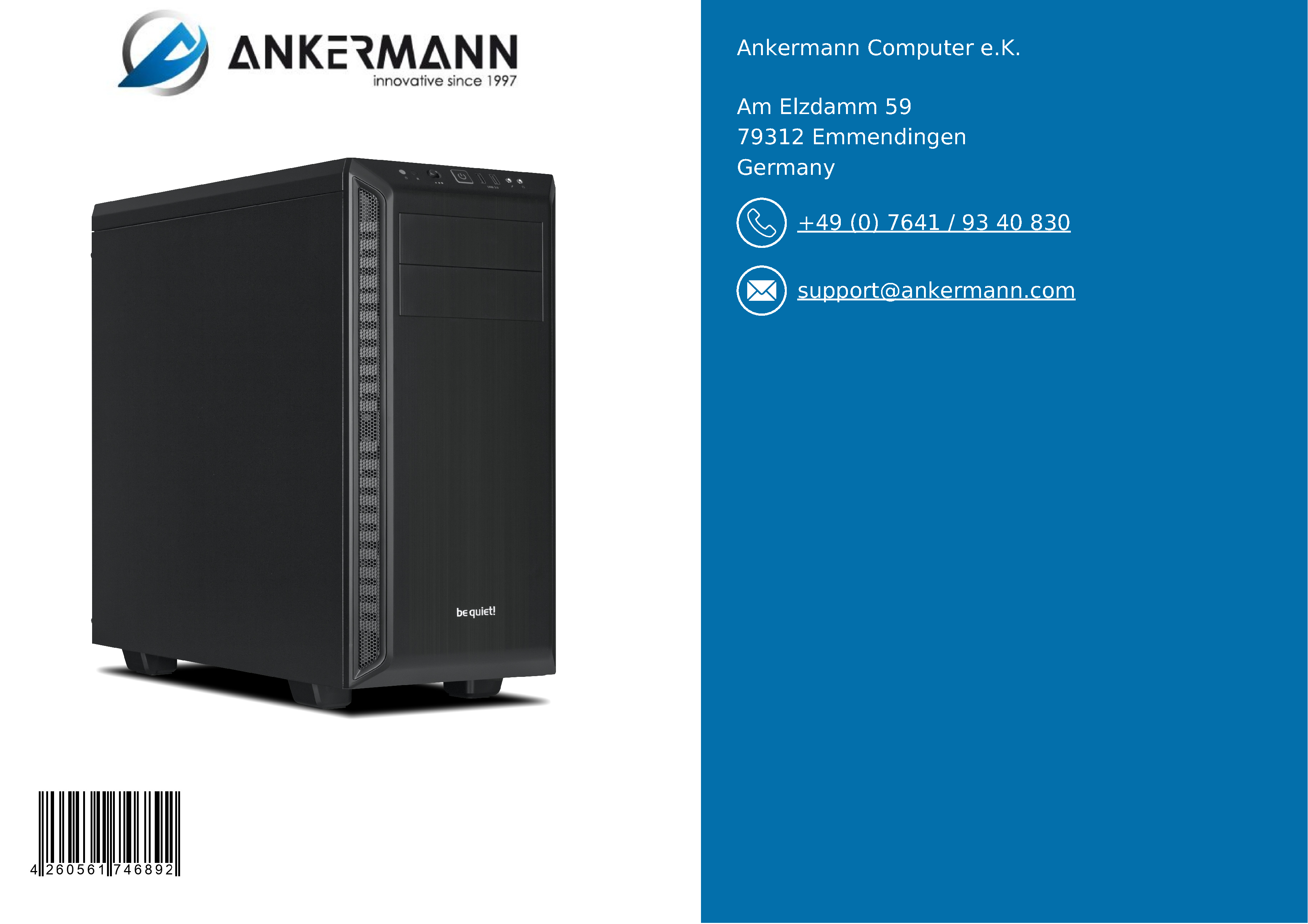 - Der Service von Ankermann bietet langjährige Erfahrung in der Herstellung und dem Vertrieb von PCs in Deutschland und 24 Monate Garantie. 6 Monate kostenloser Return-Service im Garantiefall und ein schneller und freundlicher Kundensupport sind inklusive.