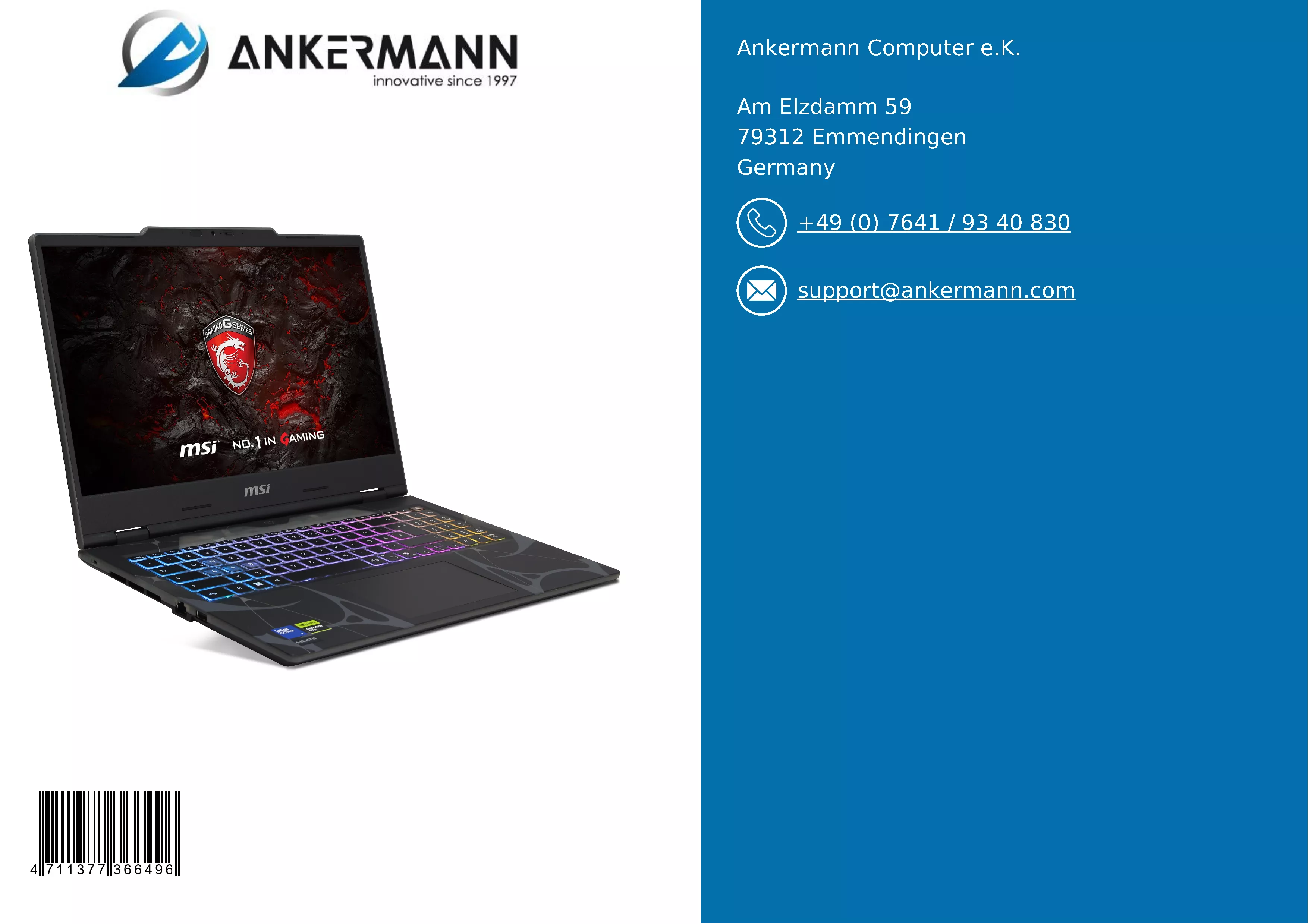 - Le service d'Ankermann vous offre une longue expérience dans la fabrication, la distribution et l'assurance qualité des PC en Allemagne et une garantie de 24 mois sur notre matériel. Un service de retour de 6 mois en cas de garantie et un support client rapide et convivial sont naturellement à notre disposition.