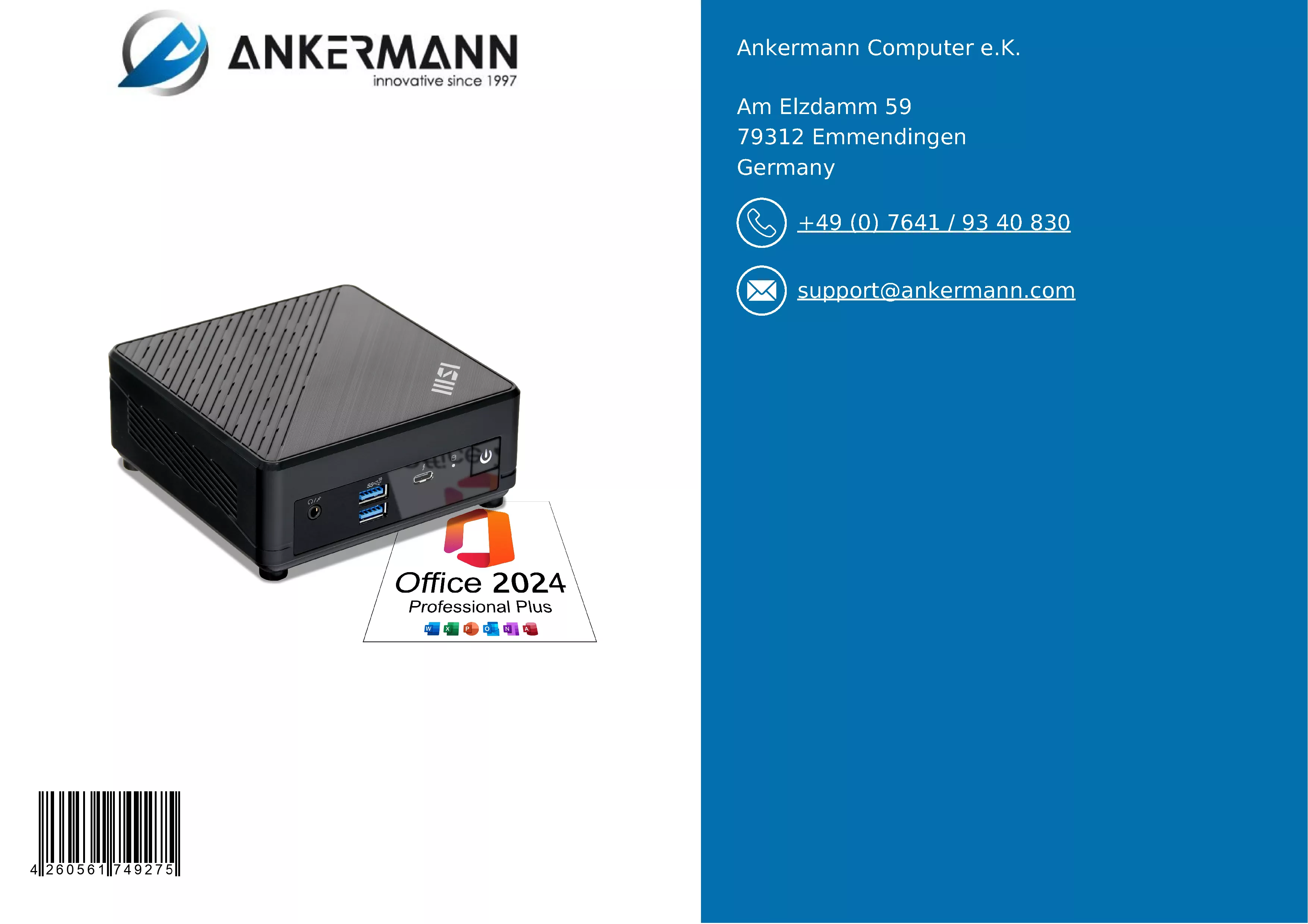 - Il servizio Ankermann offre molti anni di esperienza nella produzione e vendita di PC in Germania e una garanzia di 24 mesi. Sono inclusi un servizio di restituzione gratuita di 6 mesi in caso di richiesta di garanzia e un'assistenza clienti rapida e cordiale.